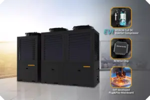 Onze commerciële warmtepomp is voorzien van een geavanceerd, intelligent ontdooisysteem, dat zorgt voor betrouwbare en constante verwarmingsprestaties, zelfs onder de meest extreme omstandigheden. Dit innovatieve systeem is ontworpen om efficiënt te werken in koude klimaten en voorkomt ijsvorming, waardoor ononderbroken comfort en efficiëntie in uw commerciële ruimte gegarandeerd zijn. Vertrouw op onze geavanceerde technologie om uw omgeving het hele jaar door warm en comfortabel te houden.